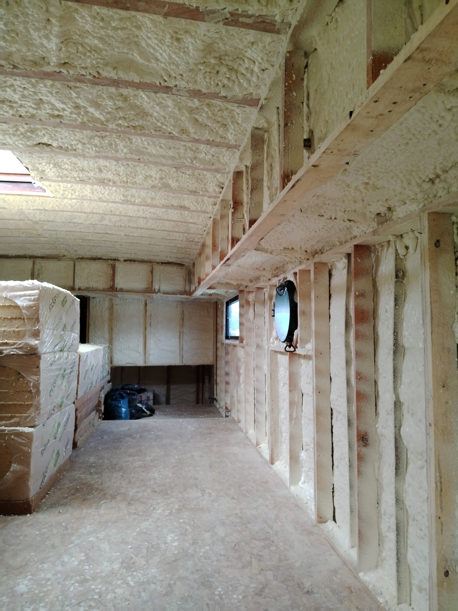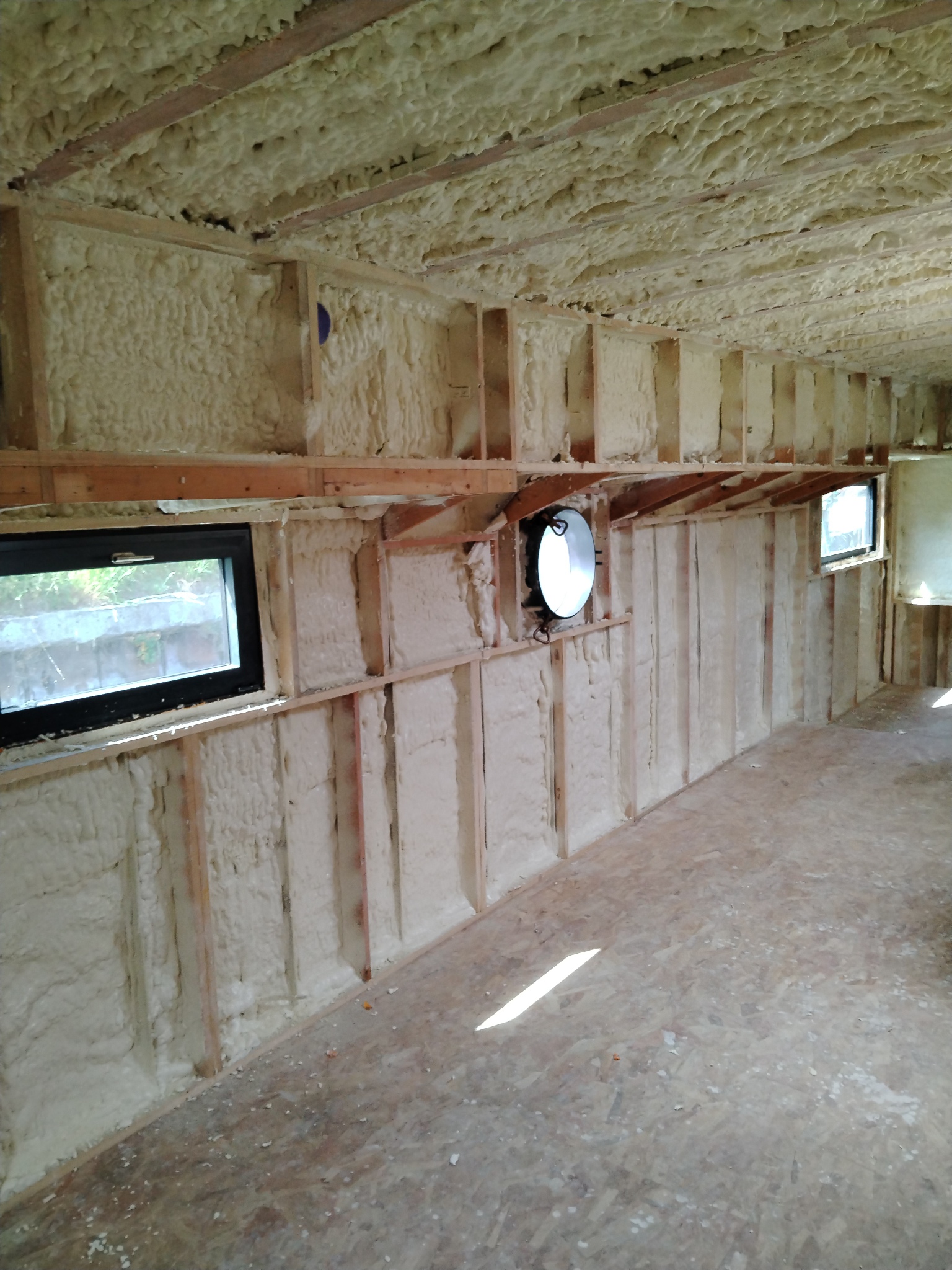 État de l’isolation existante : Aucune isolation présente sur la coque ni le plafond.